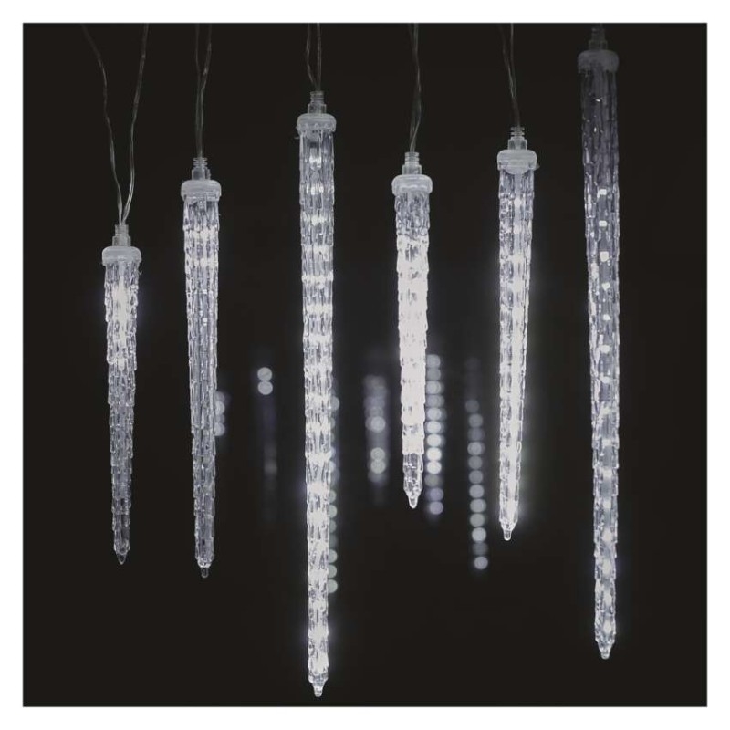 Chcete vánočně vyzdobit vaše okna, zábradlí, okraje střechy, pergolu a další místa vhodná k dozdobení? Pak právě pro vás máme vánoční svítící girlandu s šesti rampouchy, která se díky zvýšené voděodolnosti hodí do každého exteriéru i interiéru, kde krásně vynikne její studené bílé světlo. Využít ji můžete i jako stylové osvětlení na zahrádce či v interiéru restaurací, kde vkusně ozdobí i jinak obyčejný prostor. Díky dlouhému napájecímu kabelu o délce 5 m je její zapojení do elektrické sítě hračkou.