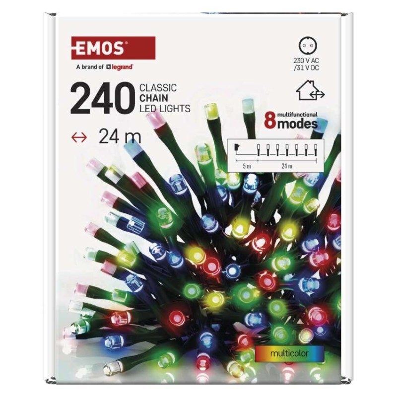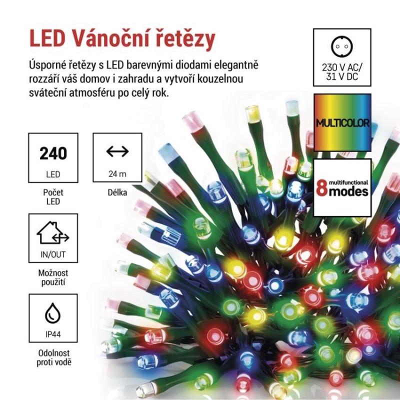 EMOS LED vánoční řetěz, 24 m, venkovní i vnitřní, multicolor, programy, časovač | DNO elektro