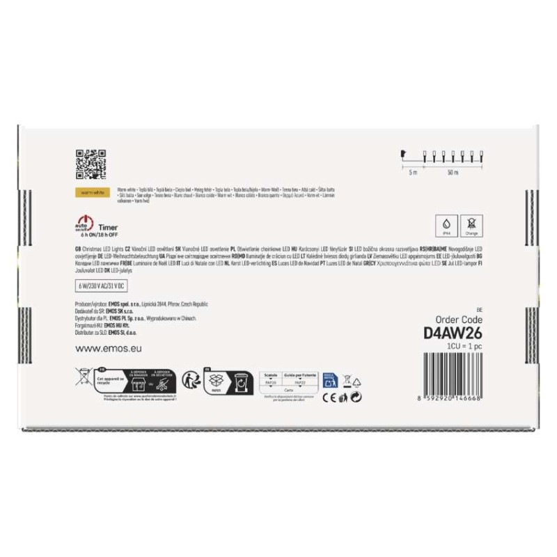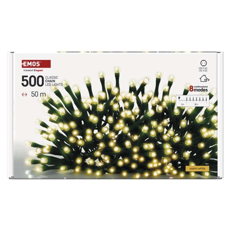 EMOS LED vánoční řetěz, 50 m, venkovní i vnitřní, teplá bílá, programy, časovač