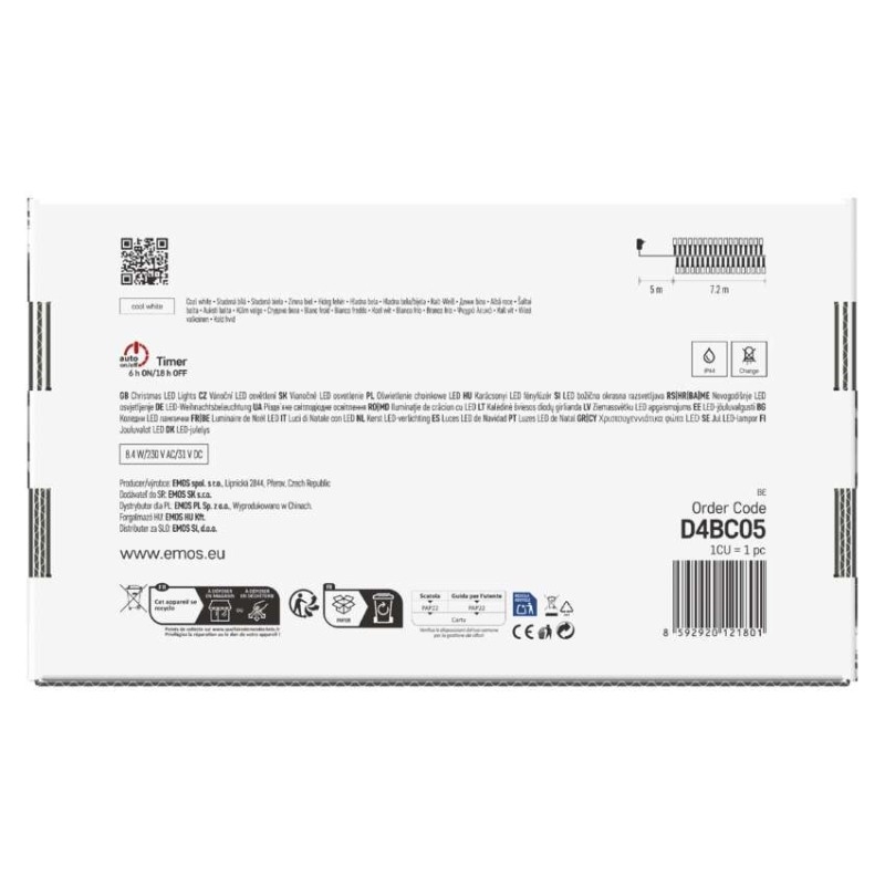 EMOS LED vánoční řetěz – ježek, 7,2 m, venkovní i vnitřní, studená bílá, programy