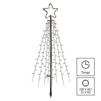 Jak velmi jednoduše vytvořit kouzelnou vánoční atmosféru na zahradě, předzahrádce, záhonu, okrasné skalce nebo u příjezdové cesty k vašemu domu? Odpovědí je zapichovací vánoční strom, který svým studeným bílým světlem rozzáří jindy temná zákoutí a přinese do nich nádech sváteční atmosféry. Díky dlouhému napájecímu kabelu o délce 4 m je jeho zapojení do elektrické sítě hračkou.