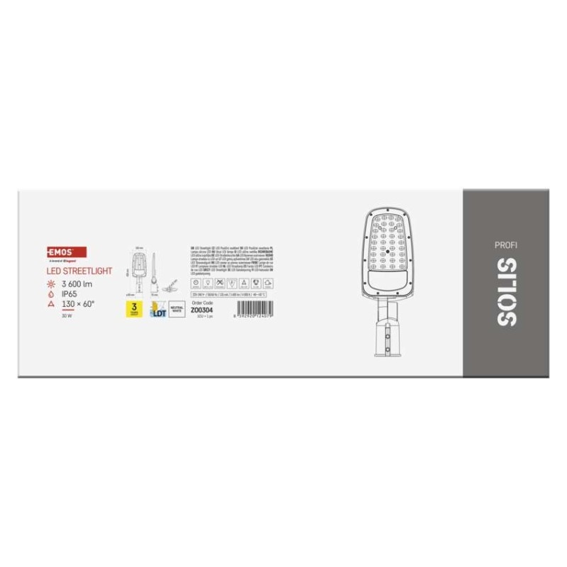 EMOS LED veřejné svítidlo SOLIS 30W, 3600 lm, neutrální bílá | DNO elektro