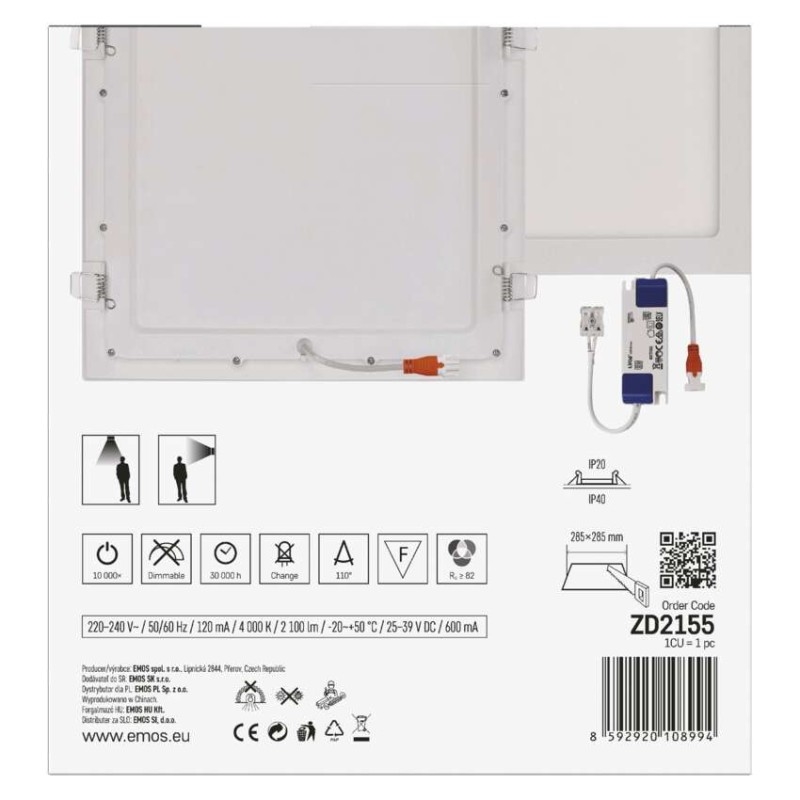 EMOS LED vestavné svítidlo NEXXO, čtvercové, bílé, 25W, neutrální bílá | DNO elektro