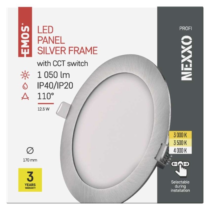 EMOS LED vestavné svítidlo NEXXO, kruhové, stříbrné, 12,5W, se změnou CCT | DNO elektro