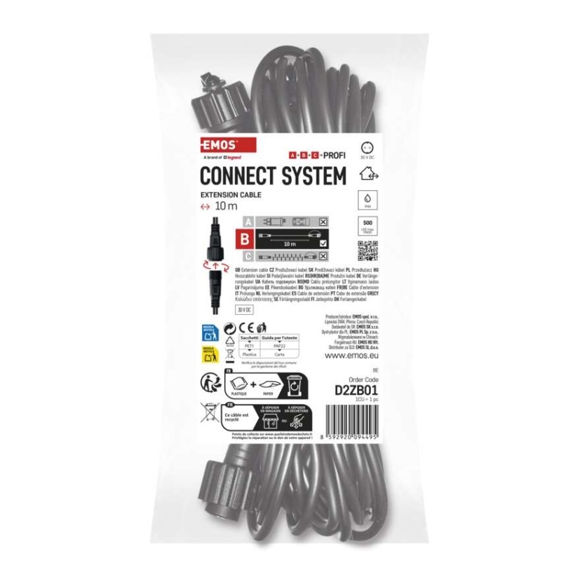 barva drátu: černá|časovač: ne|dálkový ovladač: ne|délka přívodu: 10 m|krytí: IP44|materiál: guma|max. počet propojení: 500 LED|použití: venkovní i vnitřní|příkon: neuvádí se|prodejní obal: 1 ks, závěs|produkt: prodlužovací kabel|pro řadu: profi|typ napájení: neuvádí se|vstupní napětí: 30 V DC|výstupní napětí: neuvádí se|záruční doba: 3 roky|životnost: 10 000 hodin