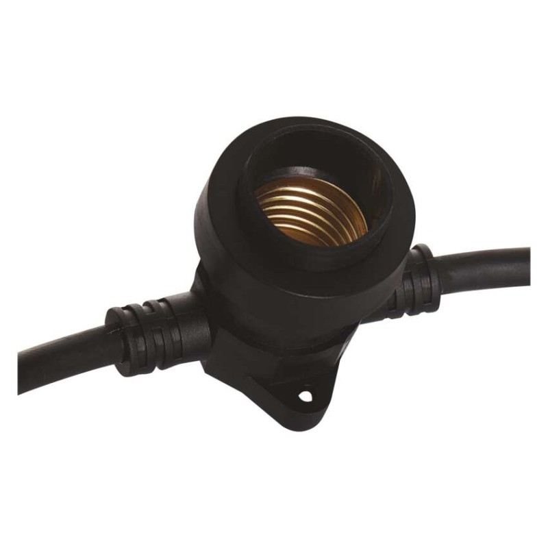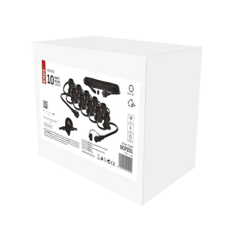 Startovací sada světelného řetězu obsahuje světelný řetěz a přívodní kabel pro připojení do elektrické zásuvky. Řetěz je vybaven paticemi E27, do kterých můžete umístit žárovky libovolné barvy, tvaru a příkonu až do maximální hodnoty 750 W. Pouhou výměnou žárovek můžete doladit útulnou atmosféru na balkoně, terase, venkovních oslavách, svatbách, kulturních akcích apod. Propojení přívodního kabelu s řetězem nebo více přikoupenými řetězy je dílem okamžiku díky vodotěsných šroubovacím spojkám. Řetěz hravě zvládne i nepřízeň počasí – žárovková objímka je vybavena gumovým těsněním, které přilne k instalované žárovce po celém jejím obvodu a zabraňuje tak průniku vody.