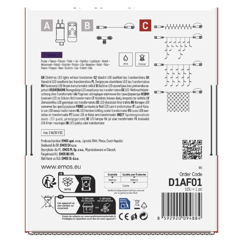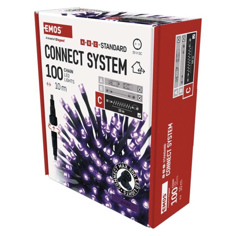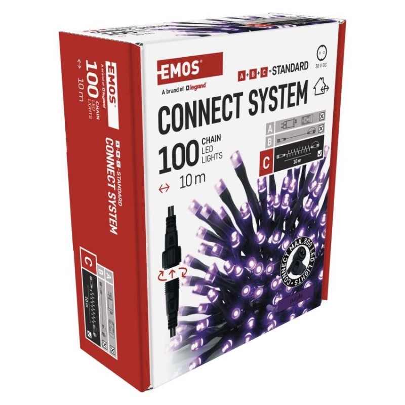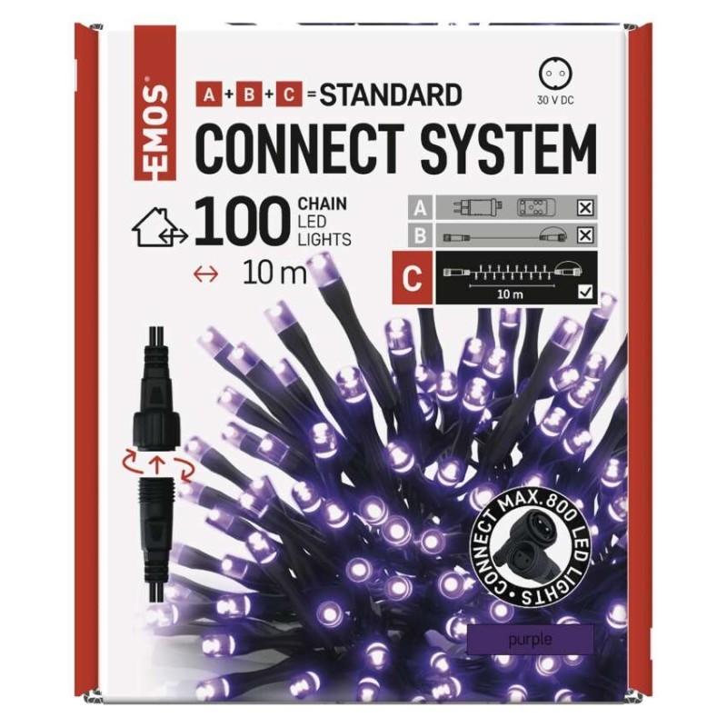 EMOS Standard LED spojovací vánoční řetěz, 10 m, venkovní i vnitřní, fialová
