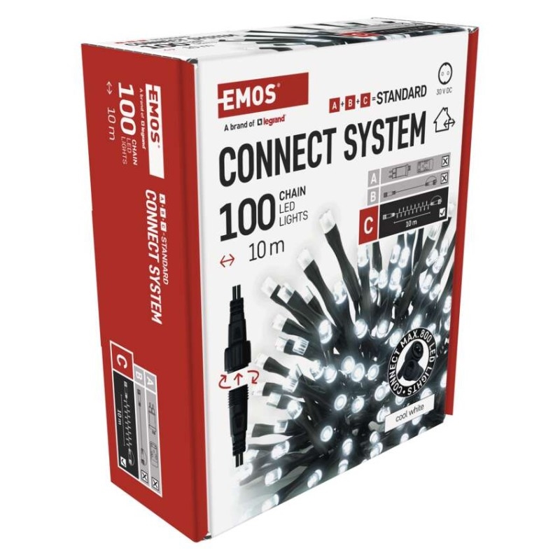 Světelné LED řetězy systému CONNECT SYSTEM STANDARD oceníte zejména při výzdobě domu po celém jeho obvodu, k ozdobení trámů, balkónů, venkovních altánů, přístřešků, plotů a okapů. Zapomínat byste určitě neměli ani na stromy na zahradě, kde se nabízí hned dvojí způsob zdobení. Tradiční spirálové zdobení, tj. odshora dolů nebo stále populárnější svislé zdobení, kdy řetěz přichytíte ke špičce stromu a spustíte dolů. Řetězy mezi sebou můžete vzájemně propojovat a kombinovat je s jinými LED světelnými prvky systému CONNECT SYSTEM STANDARD.
