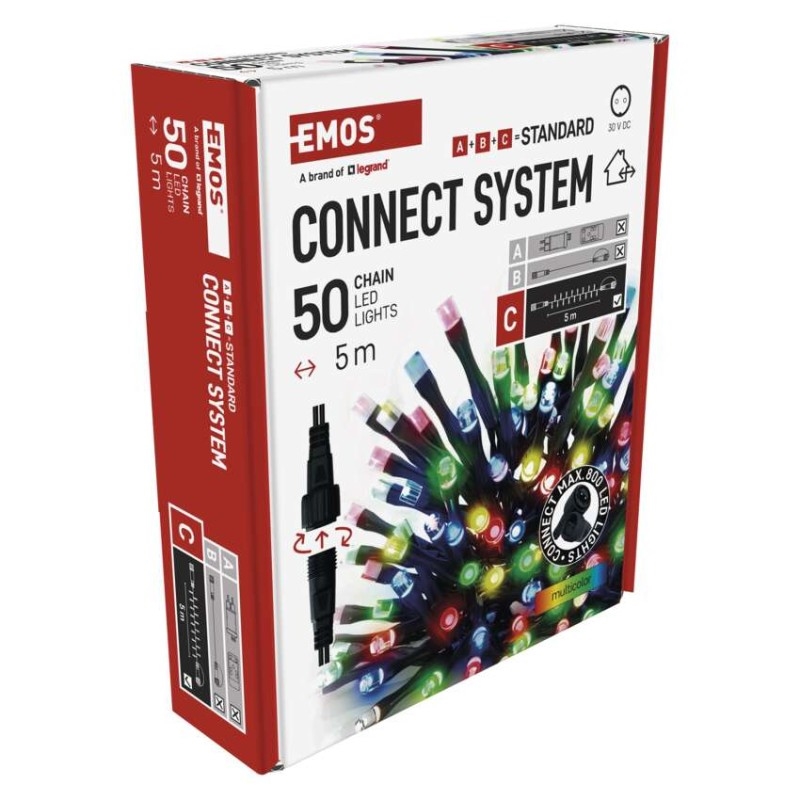 EMOS Standard LED spojovací vánoční řetěz, 5 m, venkovní i vnitřní, multicolor