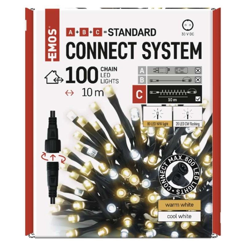 EMOS Standard LED spojovací vánoční řetěz blikající, 10 m, venkovní, teplá/studená bílá