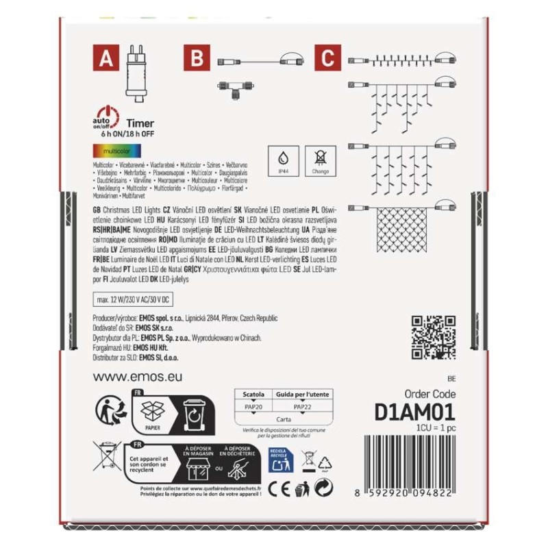 EMOS Základní sada pro spojovací řetězy Standard, 10 m, venkovní, multicolor, časovač