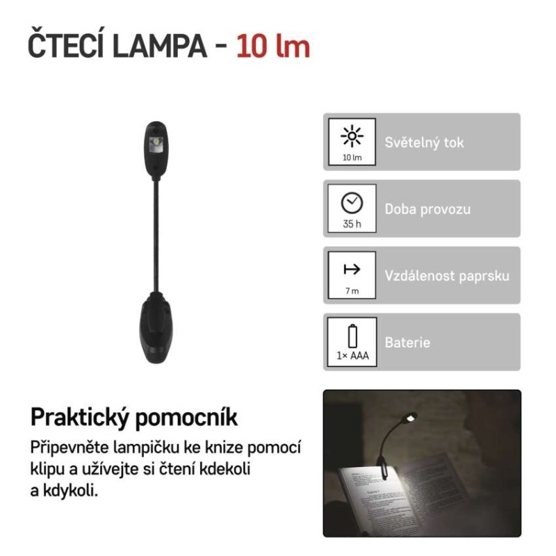 Díky volbě dvou intenzit svícení bude lampička vydávat vždy tolik světla neutrální bílé barvy, kolik právě potřebujete a vy nebudete oslněni. Světlo můžete díky flexibilnímu krku lampičky přesně směřovat tam, kam potřebujete. S lampičkou P3400 tak při čtení zcela odpadá často složité nastavování klasických stolních lampiček, jejich oslňování čtenáře nebo problém s nerovnoměrným nasvícením plochy.