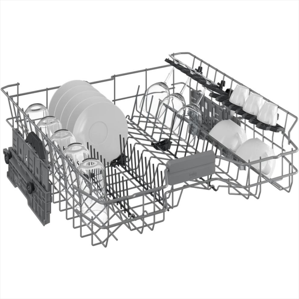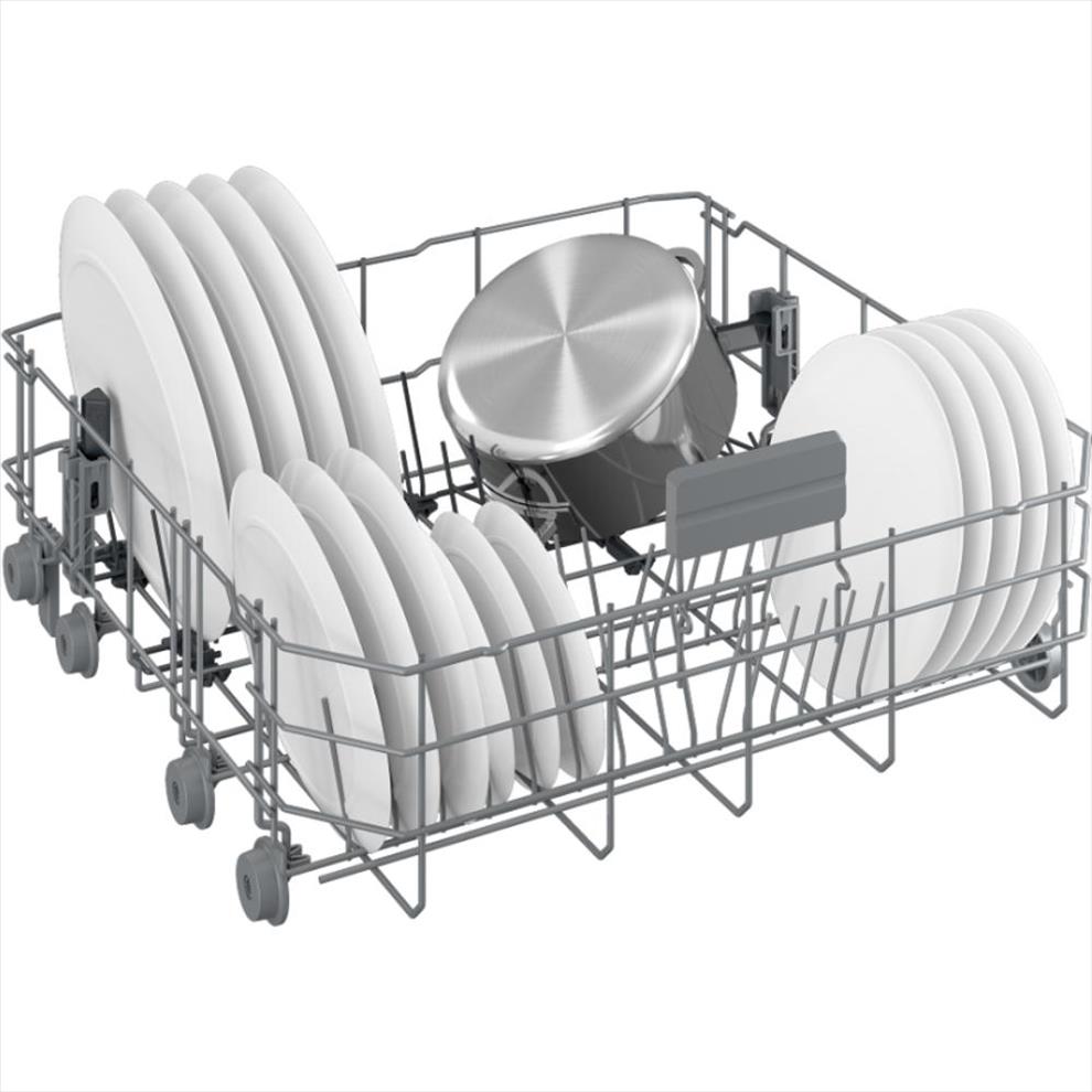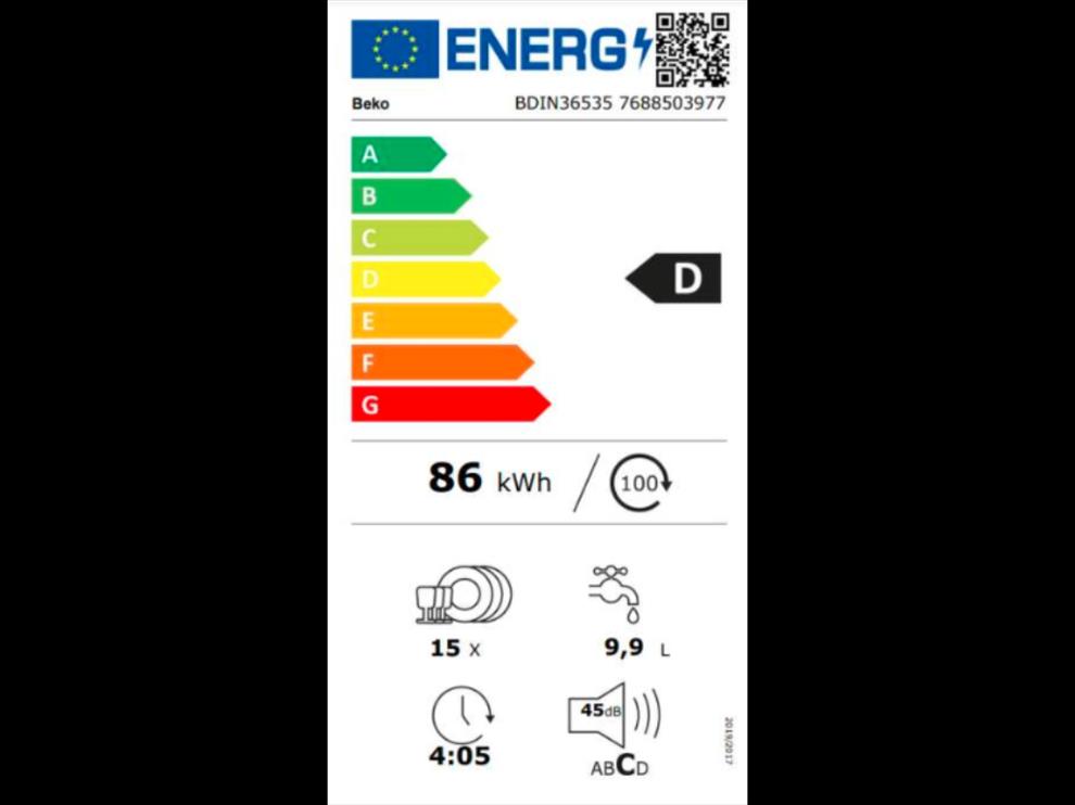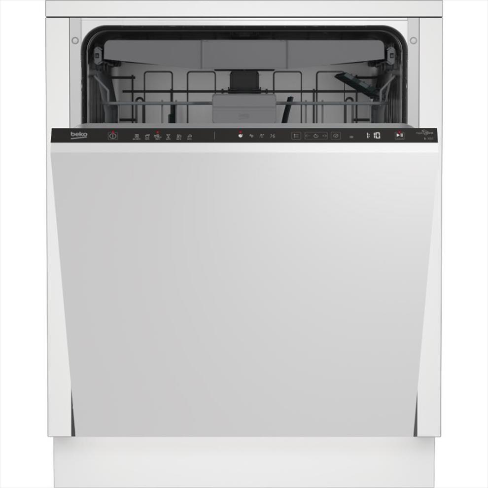 vestavná myčka • plně integrovaný panel • šířka 60 cm • příborová zásuvka • kapacita 15 sad nádobí • energetická třída D • hlučnost 45 dB • LED signalizace na podlahu • automatické otevírání dvířek