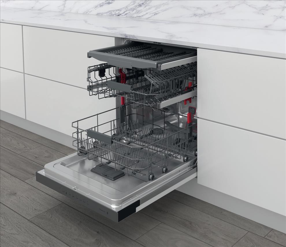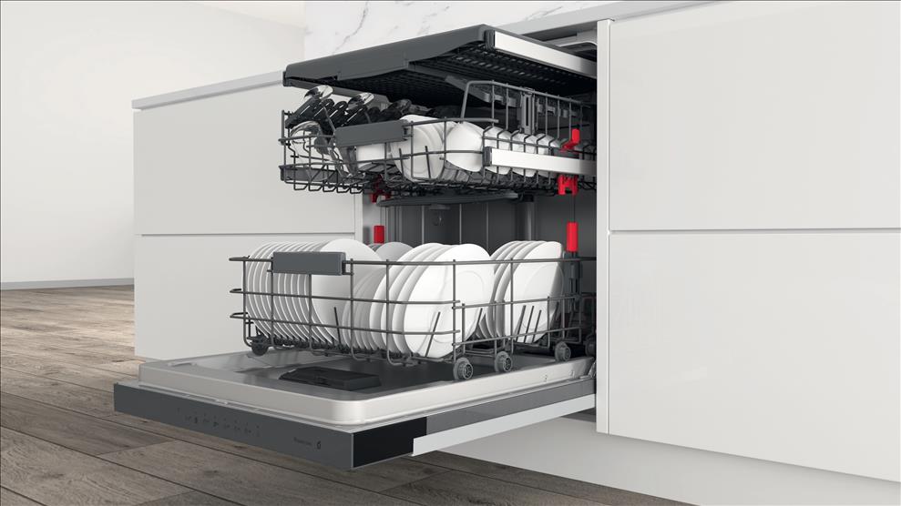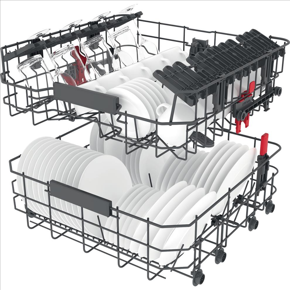 Jedinečná konstrukce Extra Space umožňuje vkládat hrnce a pánve do spodního koše ve svislé poloze, což nabízí dodatečný prostor pro dalších 10 kusů nádobí. Šetříte místo, šetříte čas.