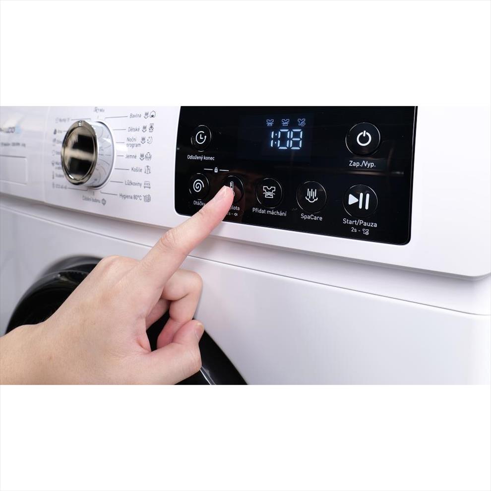 Funkce SpaCare využívá páru, která proniká hluboko do vláken ještě před samotným praním, čímž dosáhne svěžího a hygienicky čistého prádla. Pokud rádi perete přes noc, můžete se spolehnout na klidný spánek s Nočním programem, který minimalizuje hlučnost praní. Funkce odloženého konce vám pomůže naplánovat praní na ideální čas.