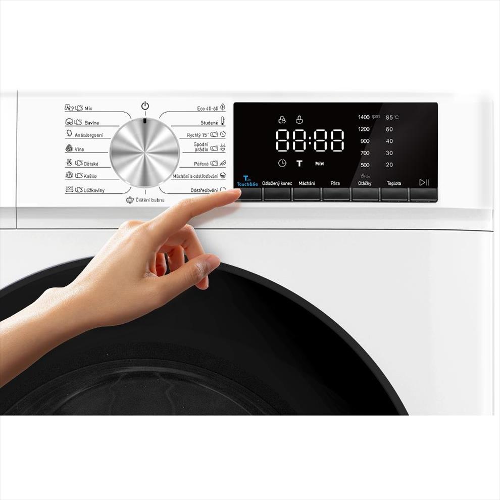 Praní prádla je ještě snadnější s tlačítkem Touch&Go, který urychlí celý proces nastavování programu. Po jednoduchém přidržení tlačítka se zapne automatické vážení prádla, podle něhož pračka vyhodnotí, který ze 3 přednastavených programů je nejvhodnější, a ten okamžitě spustí. Se 3 tlumiči, které minimalizují vibrace otáček, máte zajištěný tichý chod pračky. Bezpečí i klid pro domácnost s dětmi zajistí dětská pojistka. Uvnitř pračky se nachází kvalitní invertorový motor s prodlouženou zárukou 10 let.