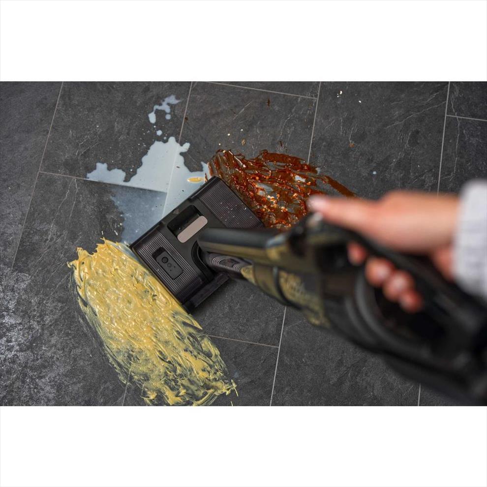 Čistič bez problému vysaje suché i mokré nečistoty. Snadno tak uklidí i vylité pití nebo převrhnuté jídlo. V režimu mokrého čištění vydrží na jedno nabití až 30 minut.