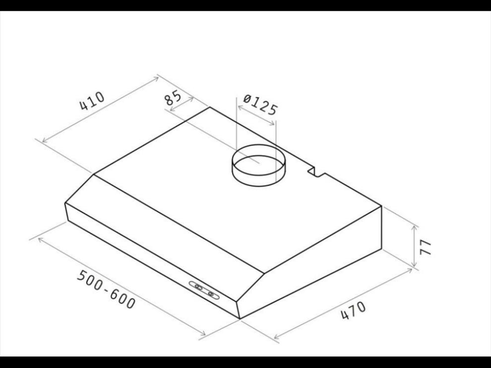 je podvěsný odsavač par (digestoř) z bíle lakovaného kovu a skla. Odsavač par s výkonem 110-205 m3/h a hlučností 52-68 db(A).