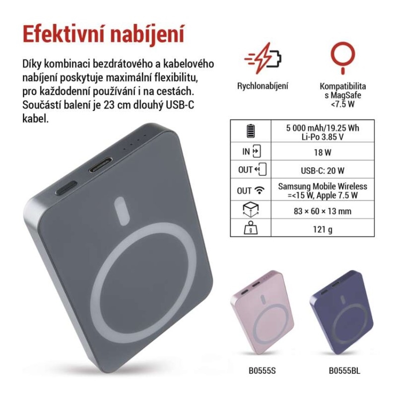 Powerbanka s kapacitou 5 000 mAh a rychlým nabíjením je ideální na cesty. Kompaktní design se vejde do kapsy, metalické tělo ji chrání a LED indikátor ukazuje zbývající kapacitu. Je vybavena bezpečnostními prvky pro spolehlivé nabíjení.