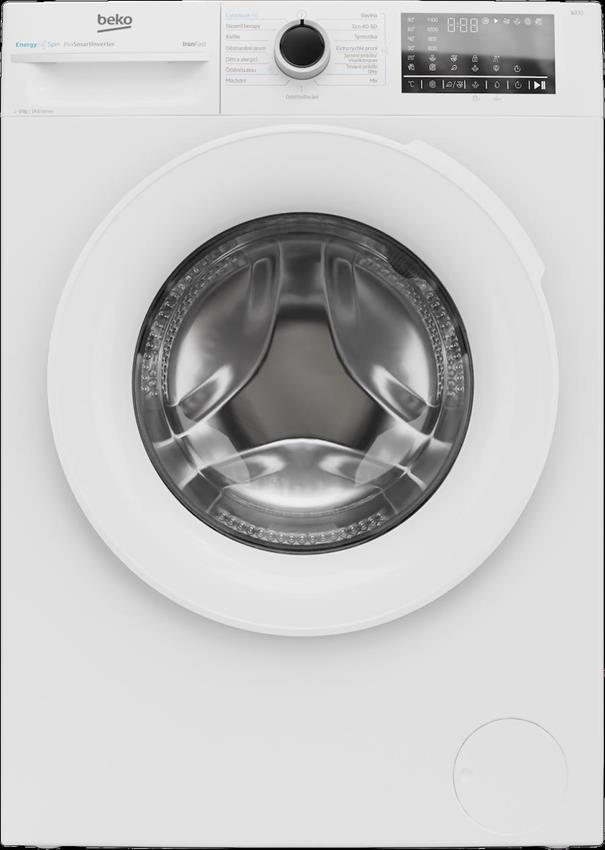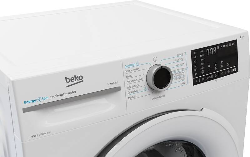 Úsporná 9kg pračka Beko BM3WFU 4941 WW v energetické třídě A s technologií EnergySpin, parními funkcemi a 15 programy praní.
