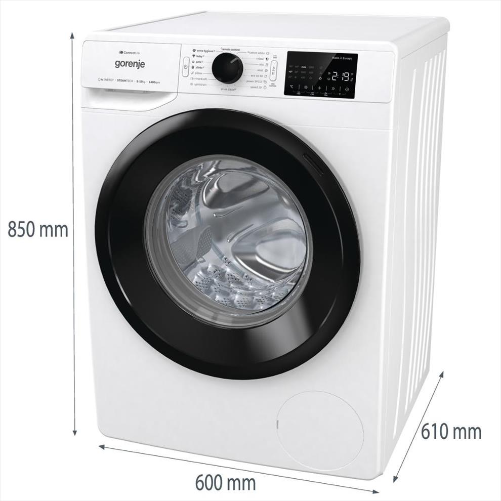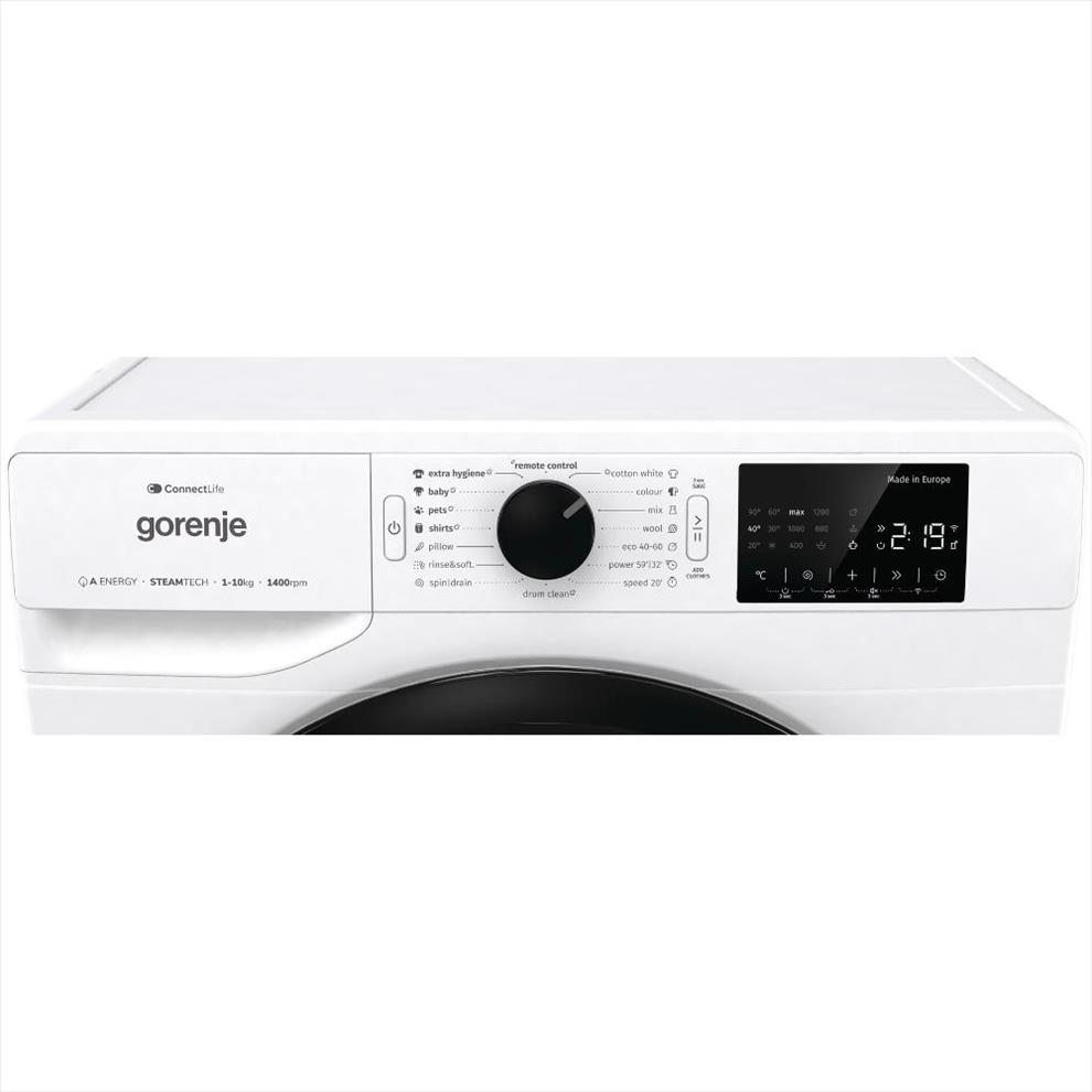 Pračka disponuje přehledným displejem, na kterém si intuitivně nastavíte potřebný program, nebo také délku programu. Pro ještě větší pohodlí lze volně stojící pračku Gorenje ovládat dálkově pomocí Wi-Fi a mobilní aplikace ConnectLife. Díky této mobilní aplikaci budete mít vždy všechna nastavení, přehled vody, elektřiny a mnoho dalšího na dosah ruky. Zařízení je navíc vybaveno řadou praktických funkcí a technologií. Mezi nimi najdete parní funkci pro redukci pomačkání i dezinfekci prádla, která urychlí následný proces žehlení. Dále se můžete těšit na funkci pro zkrácení délky programů, funkci odloženého startu a možnost přidání zapomenutého prádla i po spuštění programu. Nechybí zde ani ochrana proti přetečení a dětská pojistka zajišťující bezpečnější chod spotřebiče ve vaší domácnosti.