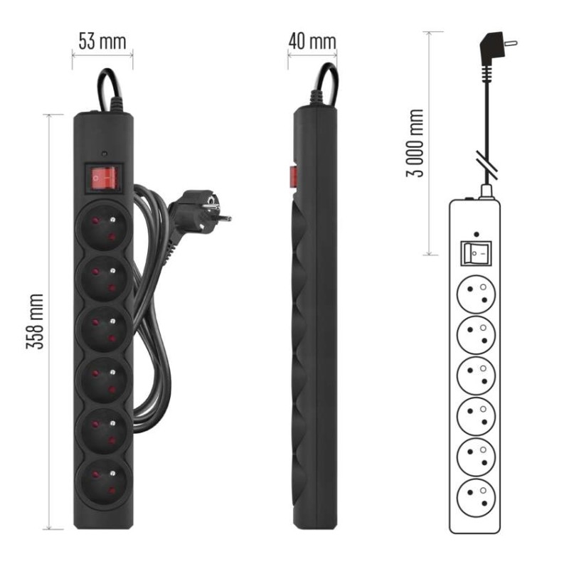 | počet zásuvek | 6× 2P + PE |