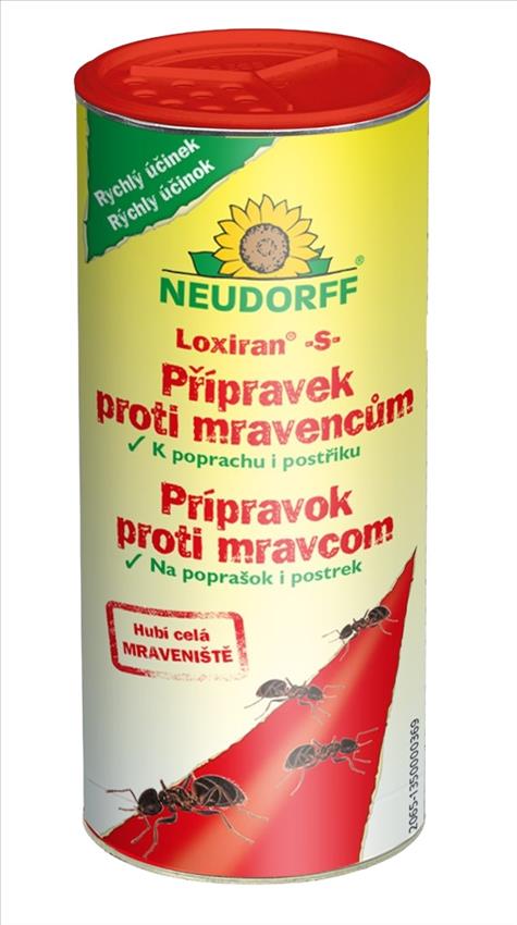 Loxiran S je rychle účinkující přípravek ve formě poprachu nebo postřiku k odstranění obtížných mravenců na cestách a jiných zpevněných nebo vydlážděných plochách, terasách apod.. Doporučuje se aplikace ráno nebo večer, kdy je většina mravenců v mraveništi. Pro ochranu užitečných organismů se doporučuje dávat přednost cílenému postřiku. Nepoužívejte ho na silně nakloněných plochách, kde je nebezpečí splachu do vodoteče - obzvláště při dešti nebo při zálivce. V bezprostřední blízkosti vodoteče (do 5 - 10 m) se přípravek nesmí používat. Přípravek neobsahuje syntetické látky. K likvidaci mravenců v domě je vhodnější přípravek: Loxiran® Mravenčí bufet.