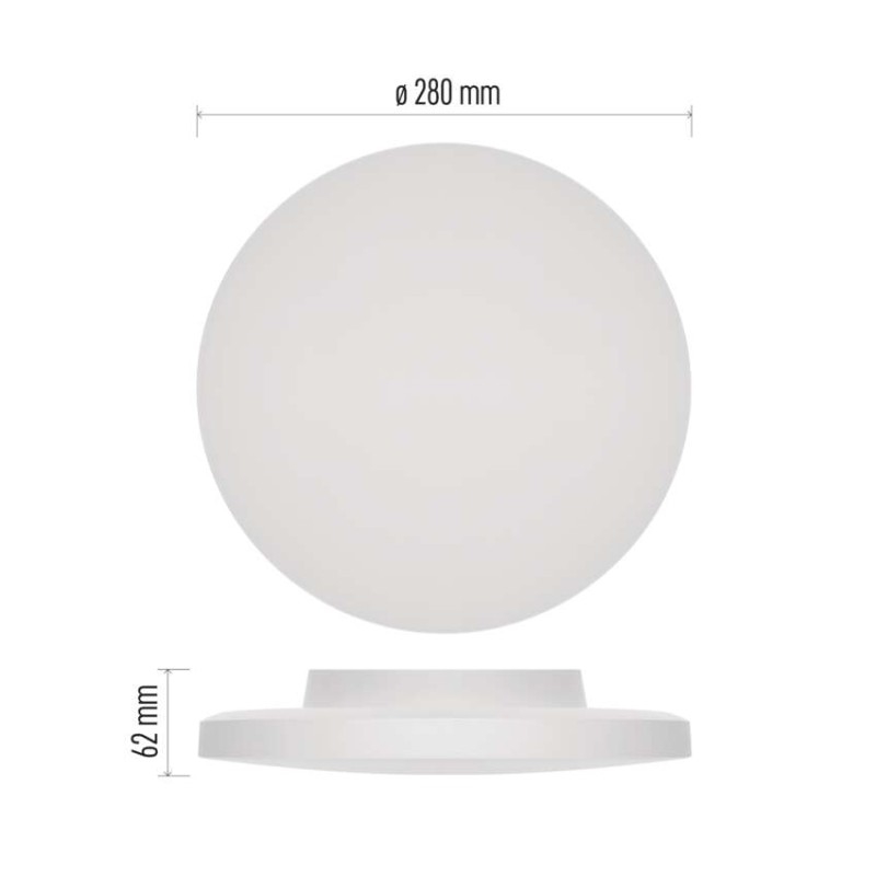 barva světla: teplá/neutrální/studená bílá|barva těla: bílá|dálkový ovladač: ne|další funkce: –|do chodby a na schodiště: ano|do dílny a garáže: ne|do kanceláře: ano|do koupelny: ano|do kuchyně: ano|do obýváku, ložnice a dětského pokoje: ano|dosah senzoru: neuvádí se|flicker-free: nebliká|frekvence: 50/60 Hz|index podání barev (CRI): Ra > 80|jazyky aplikace: –|kategorie: PROFI|kompatibilita: –|krytí: IP55|materiál difuzoru: plast|materiál LGP: neuvádí se|materiál těla: plast|montážní otvor: ne|možnost stmívání: ne|náhrada za žárovku: 110 W|napětí: 220–240 V~|na zahradu a balkon: ano|notifikace do mobilní aplikace: ne|obsah balení: –|ovládání hlasovými asistenty: ne|podporované OS: –|pohybový senzor: ne|přenosová frekvence: –|příkon: 15 W|prodejní obal: 1 ks, krabice|protokol: –|proud: 62 mA|řada: DIONI|rozměr: průměr 280 × 62 mm|světelná účinnost: 115 lm/W|světelný tok: 1 725 lm|teplota chromatičnosti: 3 000/4 000/5 700 K|tvar: kruh|typ difuzoru: mléčný|typ svítidla: klasické svítidl