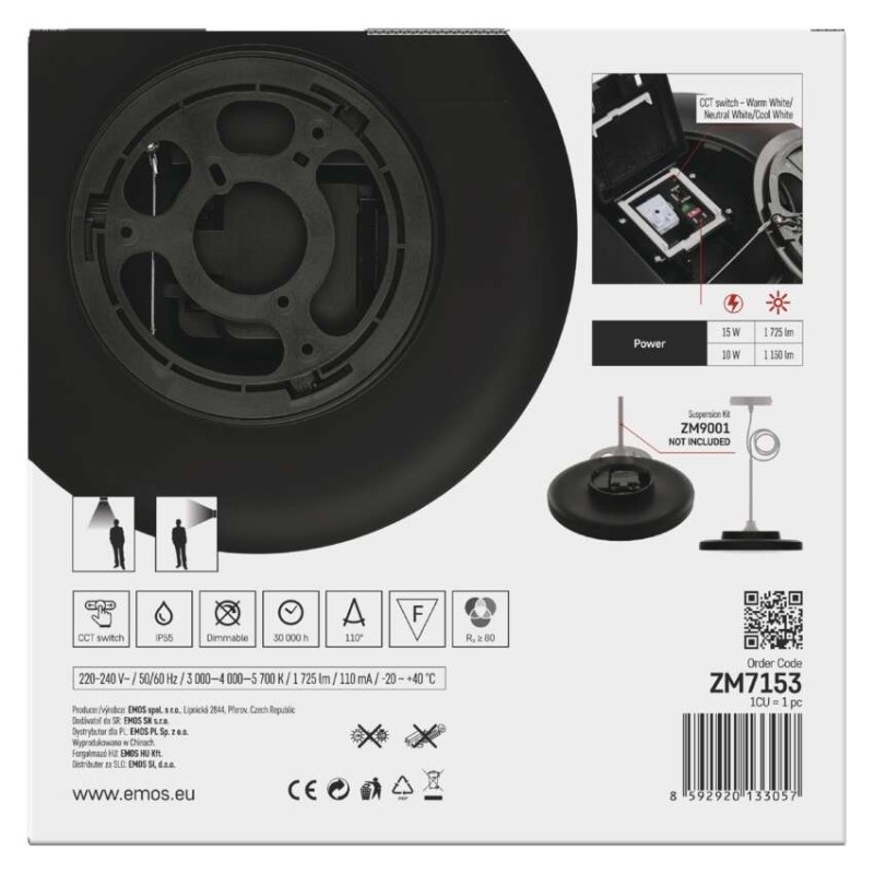 barva světla: teplá/neutrální/studená bílá|barva těla: černá|dálkový ovladač: ne|další funkce: –|do chodby a na schodiště: ano|do dílny a garáže: ne|do kanceláře: ano|do koupelny: ano|do kuchyně: ano|do obýváku, ložnice a dětského pokoje: ano|dosah senzoru: neuvádí se|flicker-free: nebliká|frekvence: 50/60 Hz|index podání barev (CRI): Ra > 80|jazyky aplikace: –|kategorie: PROFI|kompatibilita: –|krytí: IP55|materiál difuzoru: plast|materiál LGP: neuvádí se|materiál těla: plast|montážní otvor: ne|možnost stmívání: ne|náhrada za žárovku: 110 W|napětí: 220–240 V~|na zahradu a balkon: ano|notifikace do mobilní aplikace: ne|obsah balení: –|ovládání hlasovými asistenty: ne|podporované OS: –|pohybový senzor: ne|přenosová frekvence: –|příkon: 15 W|prodejní obal: 1 ks, krabice|protokol: –|proud: 62 mA|řada: DIONI|rozměr: průměr 280 × 62 mm|světelná účinnost: 115 lm/W|světelný tok: 1 725 lm|teplota chromatičnosti: 3 000/4 000/5 700 K|tvar: kruh|typ difuzoru: mléčný|typ svítidla: klasické svítid