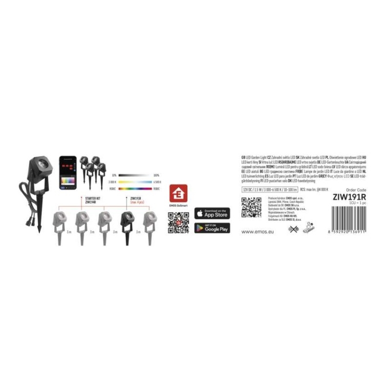 barva světla: teplá bílá–studená bílá|barva těla: černá|délka: 57 mm|délka přívodu: 1,5 m|energetická třída obsaženého světelného zdroje: G|jazyky aplikace: EN, CZ, SK, PL, DE, HU, SI, FR, + 60 dalších jazyků|kategorie: EXCLUSIVE|kompatibilita: EMOS GoSmart, Tuya, Lidl, Smartlife|krytí: IP65|materiál difuzoru: plast (PC)|materiál těla: plast|maximální počet segmentů: 8|nastavení barev (RGB): ano|nastavení teploty chromatičnosti: ano|notifikace do mobilní aplikace: ano|obsažený světelný zdroj: ZIW191R.LS|ovládání hlasovými asistenty: ano (Amazon Alexa, Google Assistant)|počet segmentů: 1|počet spínacích cyklů: –|podporované OS: iOS, Android|přenosová frekvence: 2,4 GHz (IEEE 802.11b/g/n)|příkon: 1,5 W|prodejní obal: 1 ks, krabička|protokol: WIFI + BLE|řada: GoSmart|RGB digital: ano|šířka: 57 mm|stmívání: ano|světelná účinnost: 66 lm/W|světelný tok: 100 lm|technologie: LED|teplota chromatičnosti: 3 000–6 500 K|tvar: –|vstupní napětí: 200–240 V~/50 Hz|výška: 260 mm|záruční doba: 2 roky|