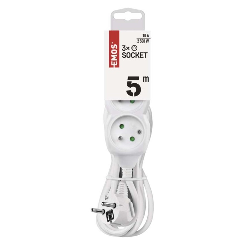 EMOS HE0315 (P0315) prodlužovací přívod bez vypínače 5m. Počet zásuvek: 3