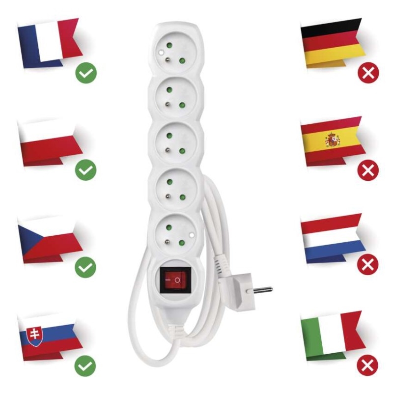 • vypínač vám umožní okamžité vypnutí elektrické energie, aniž byste prodlužovačku vypojili ze zásuvky