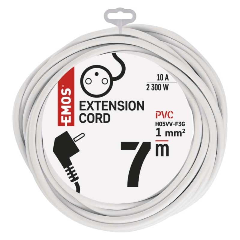 Prodlužovací kabel 7 m / 1 zásuvka / bílý / PVC / 1 mm2