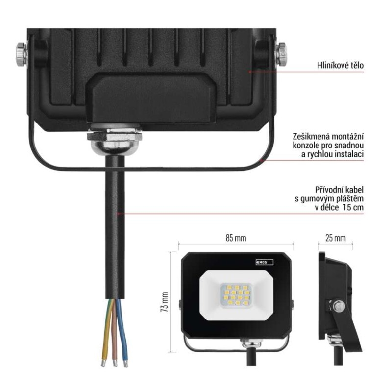 EMOS LED reflektor SIMPO 10 W, černý, neutrální bílá | DNO elektro