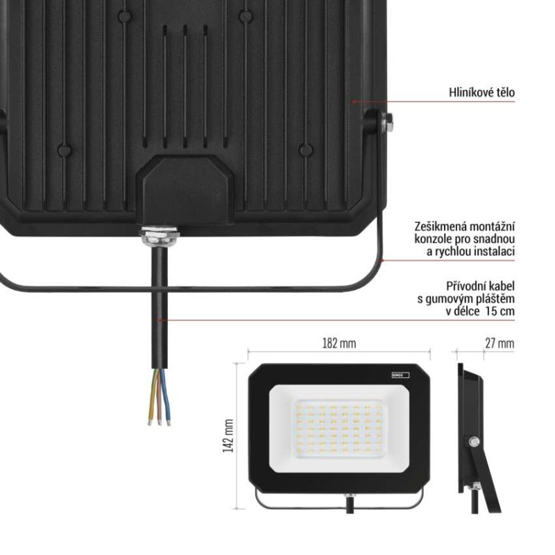 EMOS LED reflektor SIMPO 50 W, černý, neutrální bílá | DNO elektro