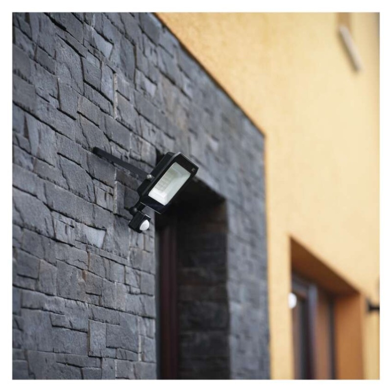 akumulátor: ne|barva: černá|barva světla: neutrální bílá|délka přívodního kabelu: 20 cm|doba svícení na AKU: neuvádí se|dosah PIR senzoru: 8 m|energetická třída použitého světelného zdroje: F|flicker-free: ano|frekvence: 50/60 Hz|index podání barev (CRI): Ra > 80|kategorie: ESSENTIAL|krytí: IP44|materiál difuzoru: sklo|materiál přívodního kabelu: guma|materiál těla: hliník|napájení: ze sítě|napětí: 220–240 V~|PIR senzor: ano|počet průchozích zásuvek: neuvádí se|použití: závěsná montáž|příkon: 50 W|prodejní obal: 1 ks, krabice|proud: 215 mA|řada: SIMPO|rozměr: 182 × 199 × 52 mm|rozsah pracovní teploty: -20 °C až +40 °C|stmívání: ne|stupeň ochrany proti mechanickým nárazům: neuvádí se|světelná účinnost: 100 lm/W|světelný tok: 5 000 lm|teplota chromatičnosti: 4 000 K|typ přívodního kabelu: H05RN-F|typ průchozích zásuvek: neuvádí se|účiník: > 0,9|úhel vyzařování: 120°|záruční doba: 2 roky|zdroj světla: LED|životnost: 25 000 hodin|zkušební žárovka součástí balení: ne