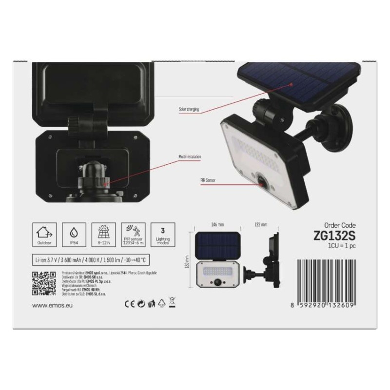 EMOS Solární LED reflektor SPILO s pohybovým čidlem, černý, neutrální bílá