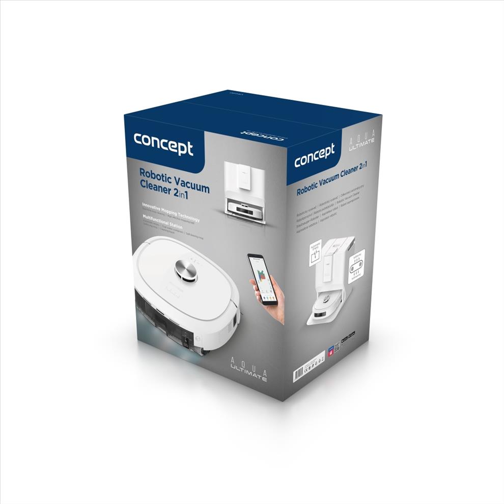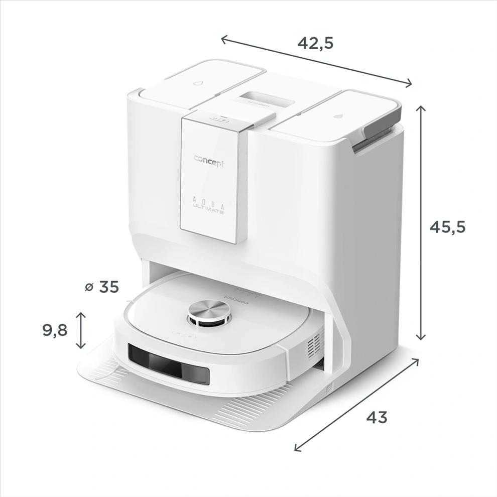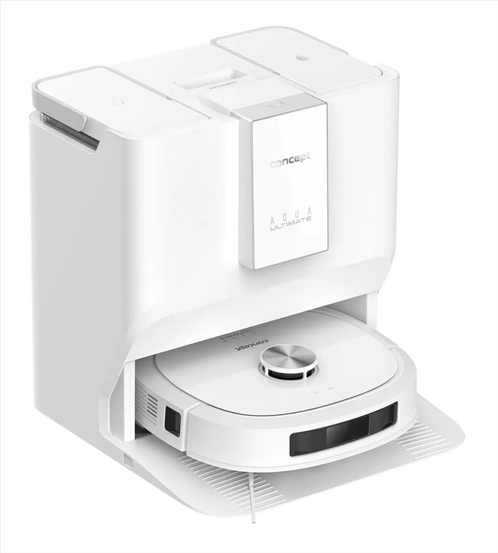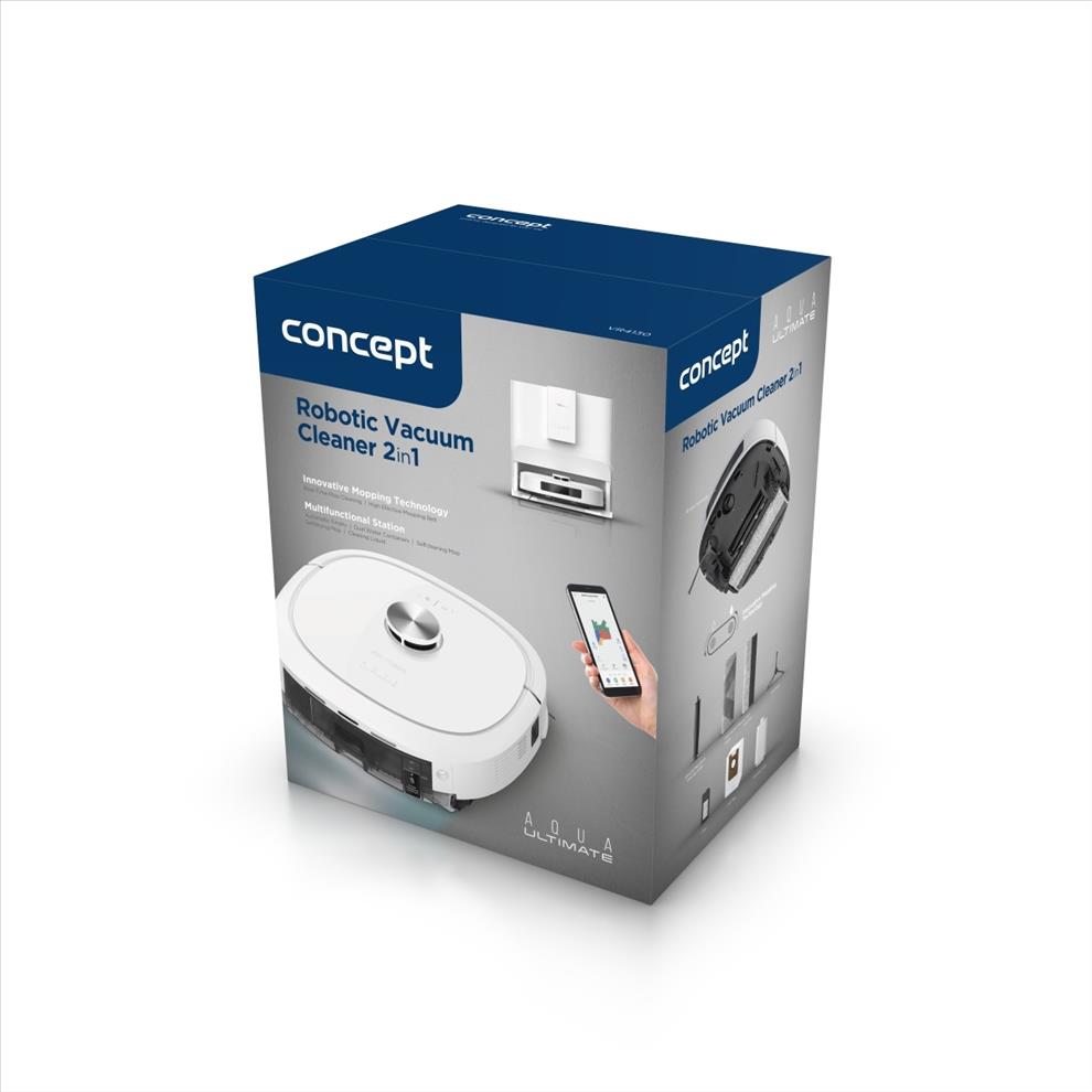 Multifunkční dokovací stanice robotického vysavače a podlahové myčky Concept VR4130 je navržena tak, aby zajistila maximální samostatnost, hygienu a pohodlí při každodenním úklidu. Díky dvěma 3,5litrovým nádržím na čistou i špinavou vodu, zásobníku na čisticí prostředek a uzavíratelnému sáčku na prach dokáže robot dlouhodobě pracovat bez vaší asistence. Před úklidem si automaticky nabere čistou vodu s čističem a když mu během práce dojde, jednoduše si ji doplní. Po skončení úklidu vysype nečistoty z vysávání přímo do prachového sáčku ve stanici, odčerpá špinavou vodu, vypere mop a vysuší ho horkým vzduchem, takže je robot neustále připraven na další úklid. Pro udržení čistoty stanice lze kdykoli spustit samočisticí režim. Zásobník na čisticí prostředek o objemu 300 ml vystačí na 50–60 dávek. Robot můžete používat i bez zásobníku na čistič, v takovém případě však bude vytírat pouze čistou vodou.