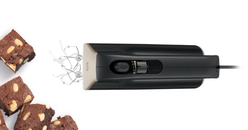 ruční šlehač • příkon 575 W • šlehací metly FineCreamer • funkce puls a turbo • pět rychlostí • ergonomické madlo SoftTouch • tichý provoz • nerezové prvky