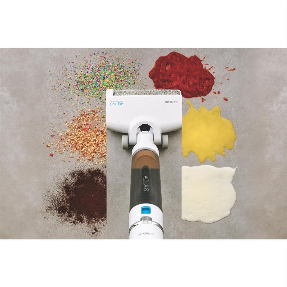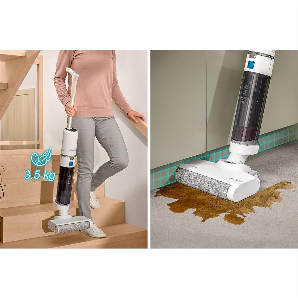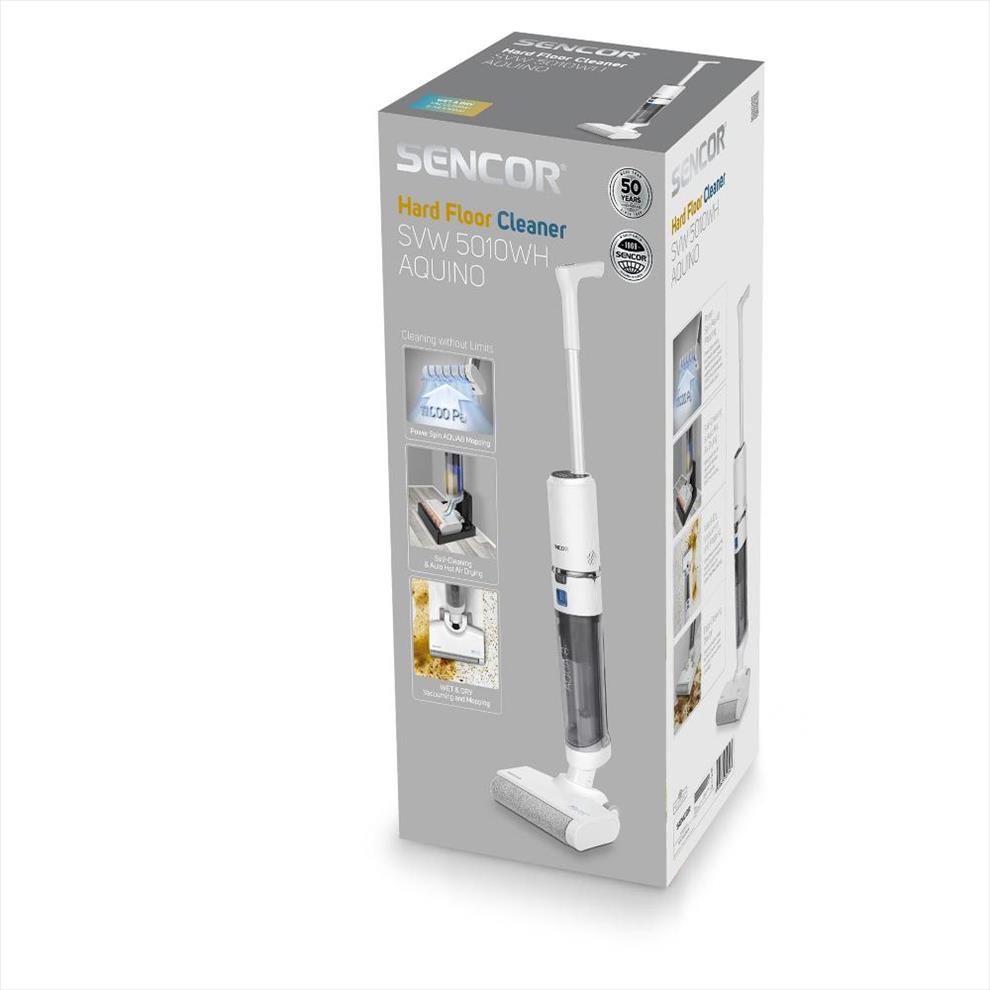 Řešíte úklid podlah v domácnosti a stále nejste spokojeni? Sáhněte po neocenitelném pomocníkovi v podobě víceúčelového tyčového vysavače Sencor SVW 5010WH AQUINO. S digitální motorem dosahujícím sacího výkonu až 11 000 Pa a funkcí Wet & Dry si vysavač hravě poradí se suchými i mokrými nečistotami. Skvělých výsledků během mopování Power Spin Aqua 8 dosahuje díky vysoké rychlosti rotačního kartáče. Disponuje dvěma oddělenými nádobami na čistou a špinavou vodu. Téměř bezúdržbový provoz zajišťuje funkce Self-cleaning (samočištění) a následné sušení horkým vzduchem v nabíjecí stanici. Na jedno nabití vydrží až 25 minut. Skvělým benefitem je pak podpora rychlého nabíjení. Jistě oceníte také kompaktní design a nízkou hmotnost 3,5 kg.