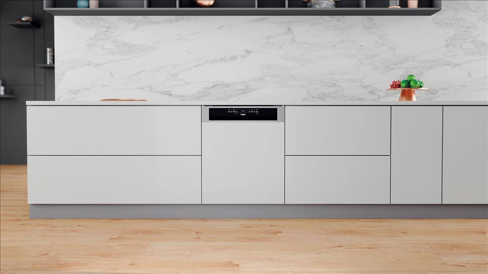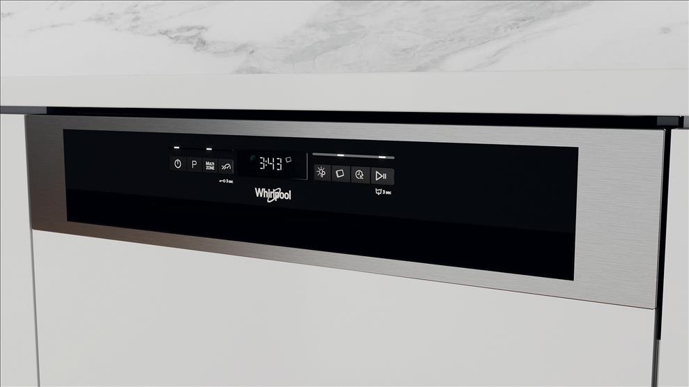 Nerezový vnitřek myčky Whirlpool zajišťuje zářivě čisté nádobí a čistý interiér.