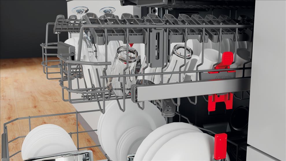 Jedinečná konstrukce Extra Space umožňuje vkládat hrnce a pánve do spodního koše ve svislé poloze, což nabízí dodatečný prostor pro dalších 10 kusů nádobí. Šetříte místo, šetříte čas.