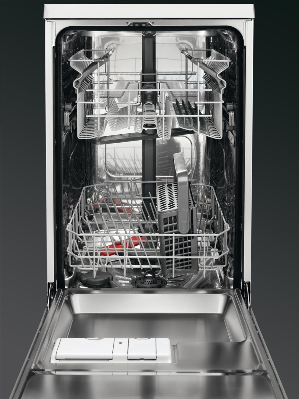 • Výškově nastavitelný horní košík, dokonce i při plném naložení