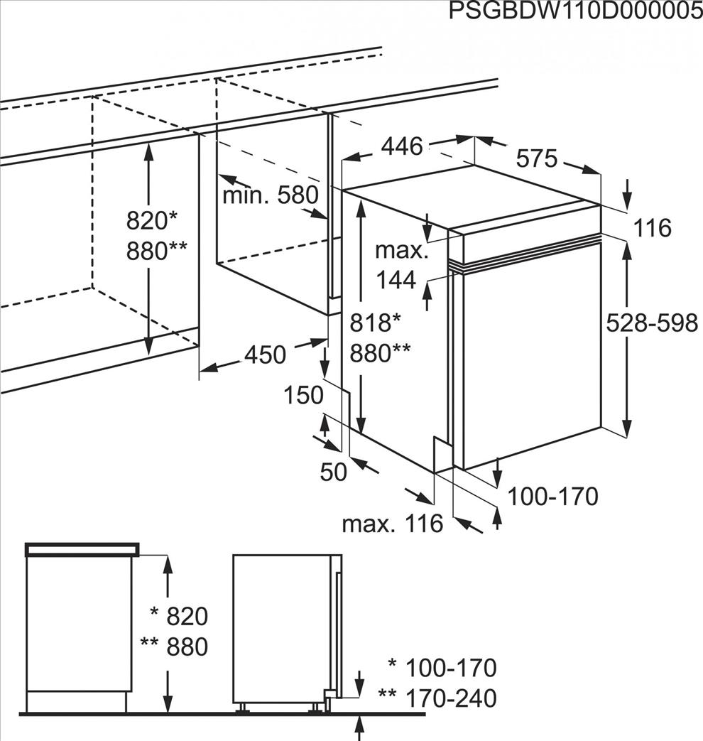 Výška pro vestavbu: 880mm