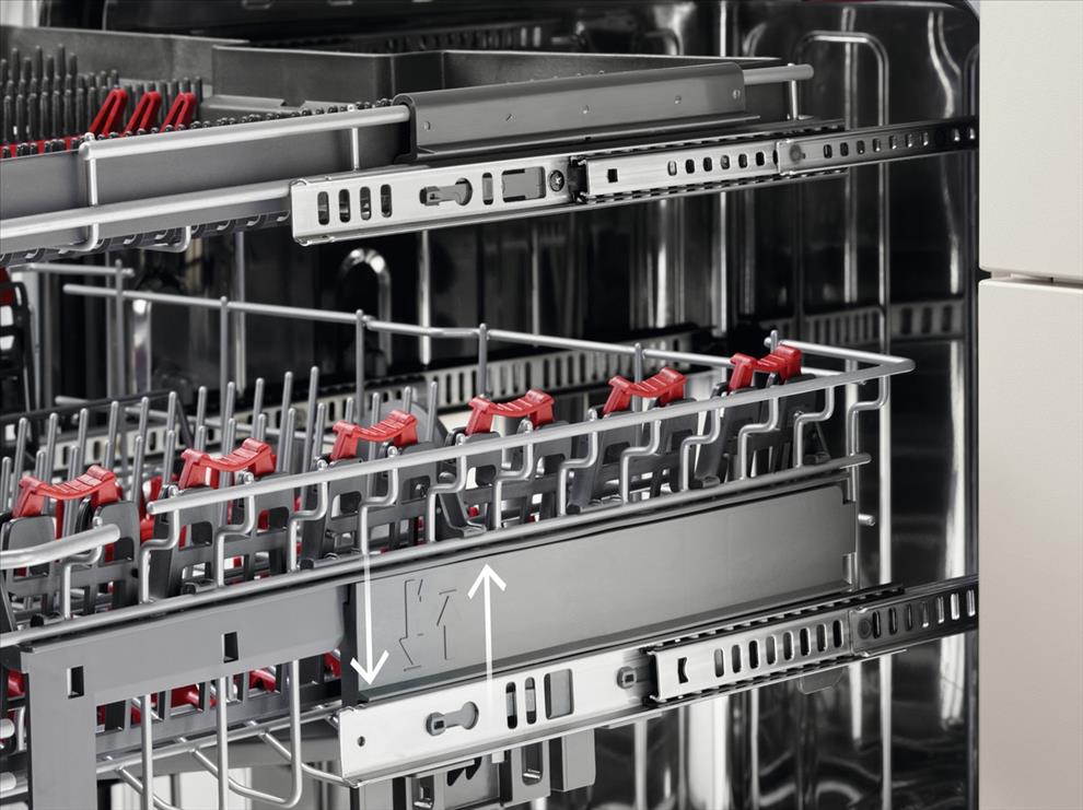 • Výškově nastavitelný horní košík, dokonce i při plném naložení