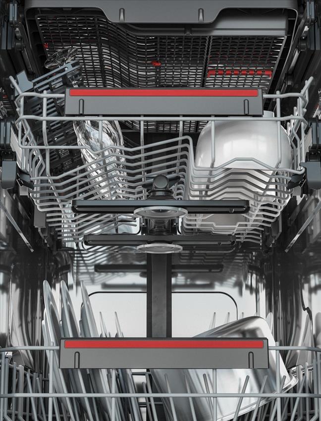Dvě sprchovací ramena zajišťují maximální pokrytí vnitřního prostoru myčky vodou. Rotující ostřikovače posílají proudy vody do všech rohů dolního i horního koše. Na dokonalé výsledky mytí nádobí se tak můžete spolehnout.