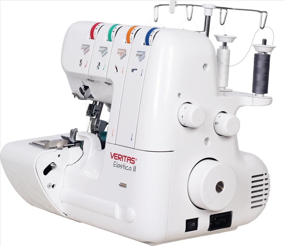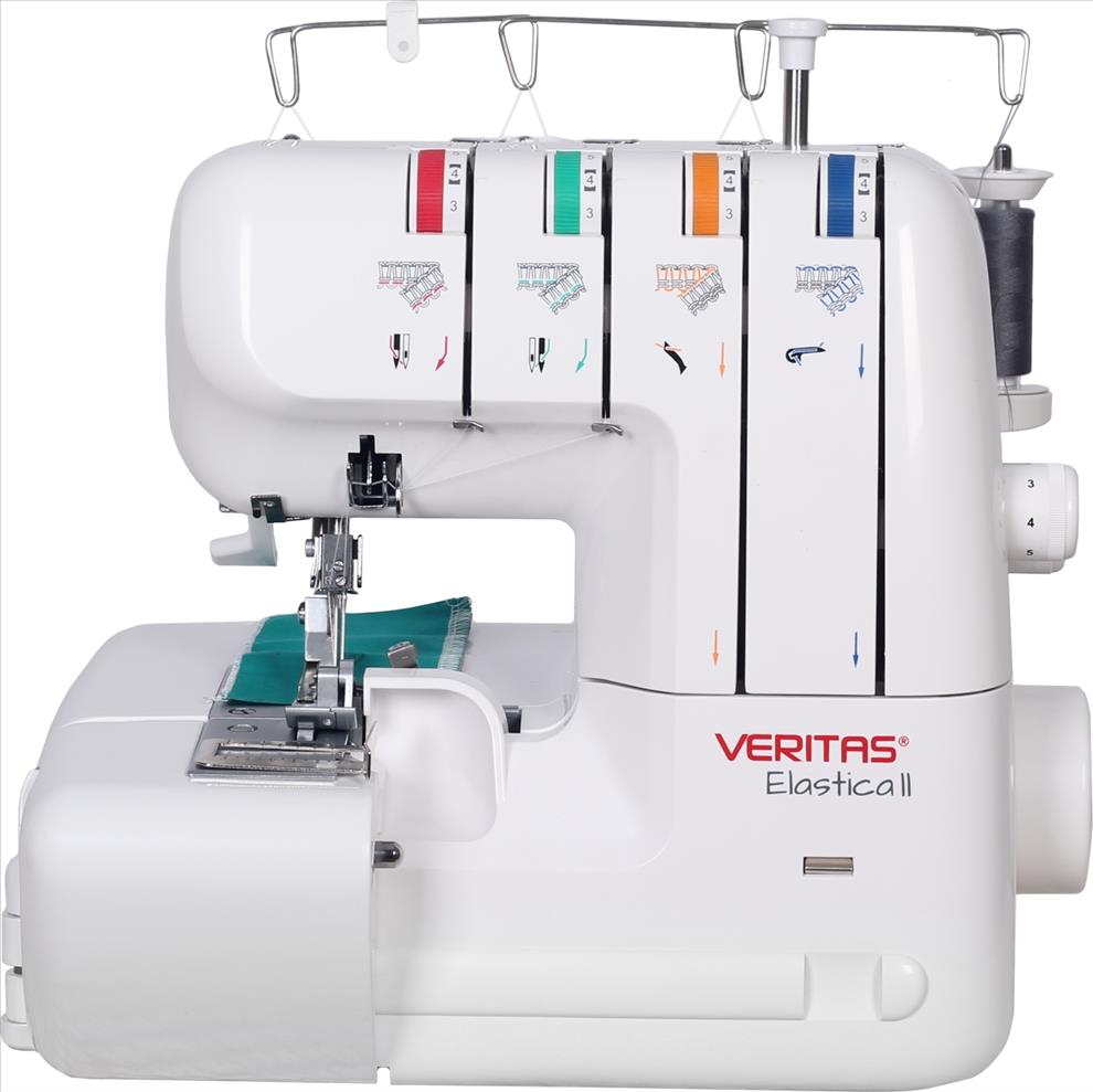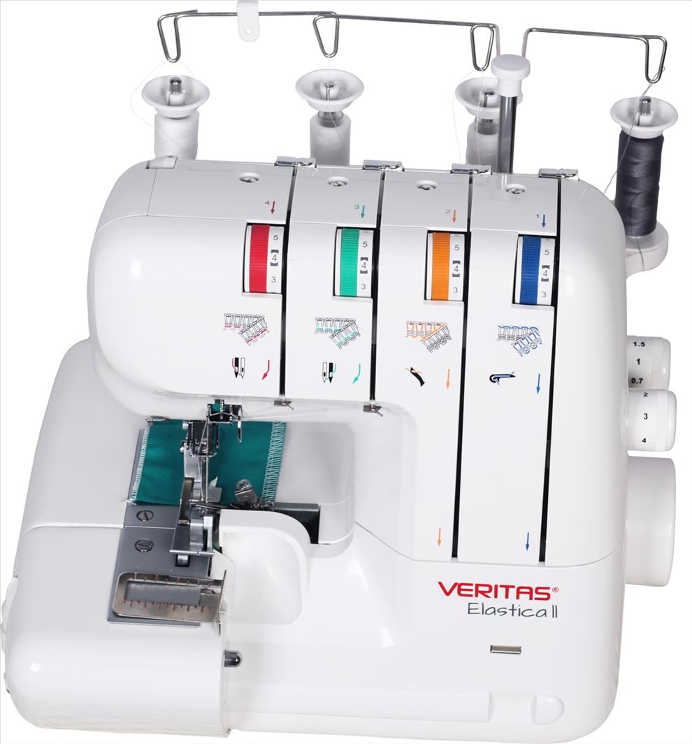 S overlockem VERITAS Elastica můžete šít se 2, 3 nebo 4 nitěmi a ušít velmi pružný a současně vysoce pevný overlockový šev. Vedení všech 4 nití je barevně odlišné pro snadnou orientaci při navlékání. Odříznuté části látky se shromažďují ve schránce a neztěžují vám práci. Součástí stroje je navíc pouzdro s početným příslušenstvím, včetně horního nože a pinzety, které jsou tak vždy po ruce a usnadní vám práci.