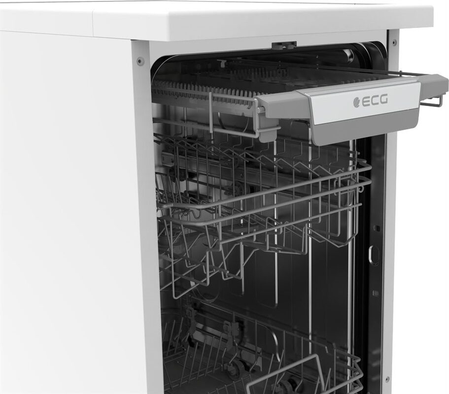 ECG EDF 100243 BlackLine je elegantní myčka nádobí, která se může díky svému bílému designu stát ozdobou jakékoliv kuchyně. V prvé řadě se však jedná o spotřebič, který vám v domácnosti výrazně usnadní každodenní práci. Umyjete v něm až 10 jídelních sad najednou, přičemž si můžete volit ze 7 různých programů. Díky funkci sušení zbytkovým teplem navíc máte jistotu, že vaše nádobí bude nejen dokonale čisté, ale i perfektně suché. V neposlední řadě vás pak myčka potěší velmi tichým chodem (jen 49 dB) a nízkou spotřebou vody – na jeden cyklus jí potřebuje jen 9 litrů. Myčku jsme také opatřili nerezovým vnitřním povrchem a systémem Aquastop pro bezpečný provoz.