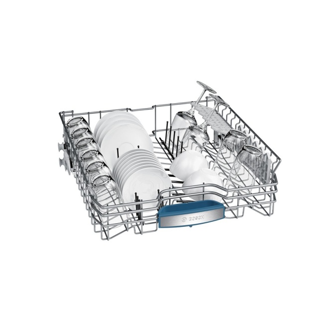 Maximální flexibilita při ukládání nádobí díky pohyblivým elementům horního a dolního koše VarioFlex Plus: držák na skleničky na dlouhé stopce ve spodním koši, sklopné trny v horním a dolním koši (6/6), dělitelné sklopné etažéry a přihrádka na příbory vytváří mnoho možností pro přizpůsobení individuálním potřebám. Součástí je příborová zásuvka VarioFlex Plus s pohyblivými stranami a trny v přední části zásuvky. Horní koš můžete výškově nastavit ve třech polohách, a tím vytvořit potřebné místo pro velké hrnce a nádobí.