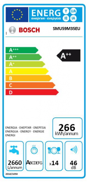 • spotřeba energie v programu Eco 50: 266 kWh/rok na základě 280 standardních mycích cyklů (napojení na studenou vodu) a spotřebě v režimech s nízkou spotřebou energie. Skutečná spotřeba energie závisí na způsobu používání spotřebiče. |
